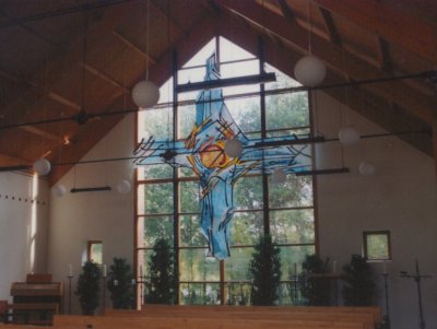 Glaskreuz (6m hoch) Sakrale Kunst - Altarraumgestaltung in verschiedenen MaterialienSteinfurt-Borghorst - Friedhofskapelle