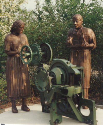 Skulpturengruppe in Bronze (Textilarbeiter)
