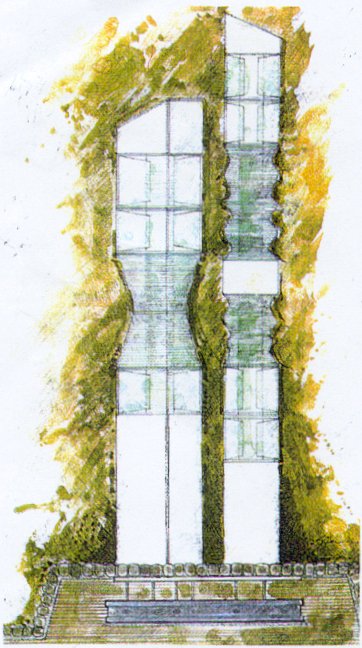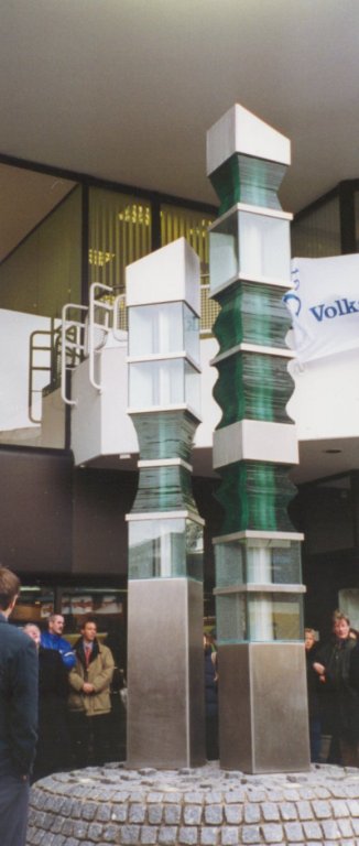 Platzgestaltung, Edelstahl-Glas-Skulptur (6, 50m u. 5, 50m)