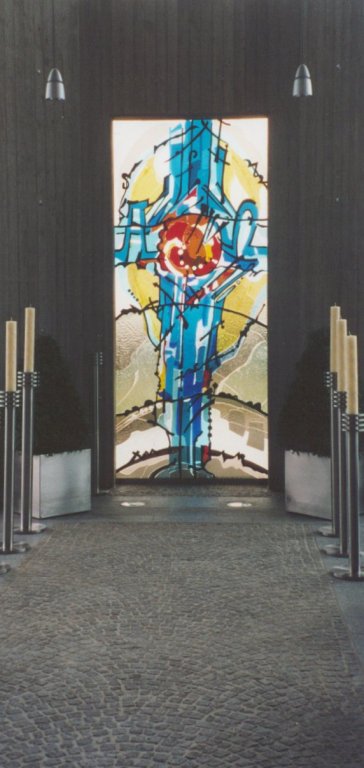 Fusingglaswand Sakrale Kunst - Glasmalerei und Fusingglas (Glaskunst)Altenberge - Friedhofskapelle